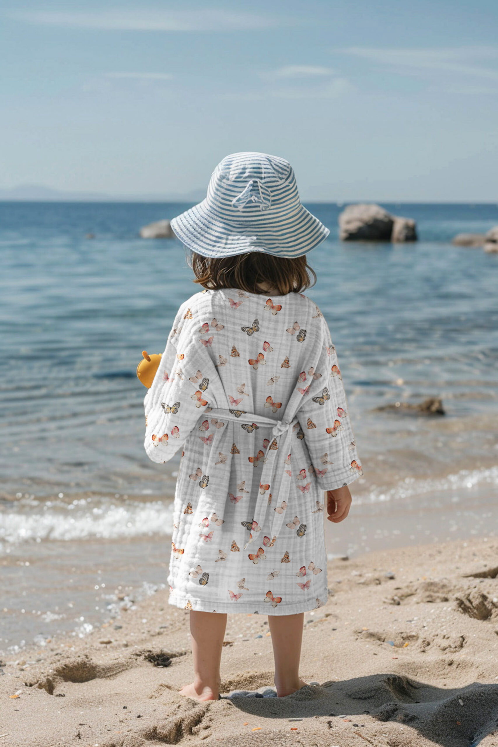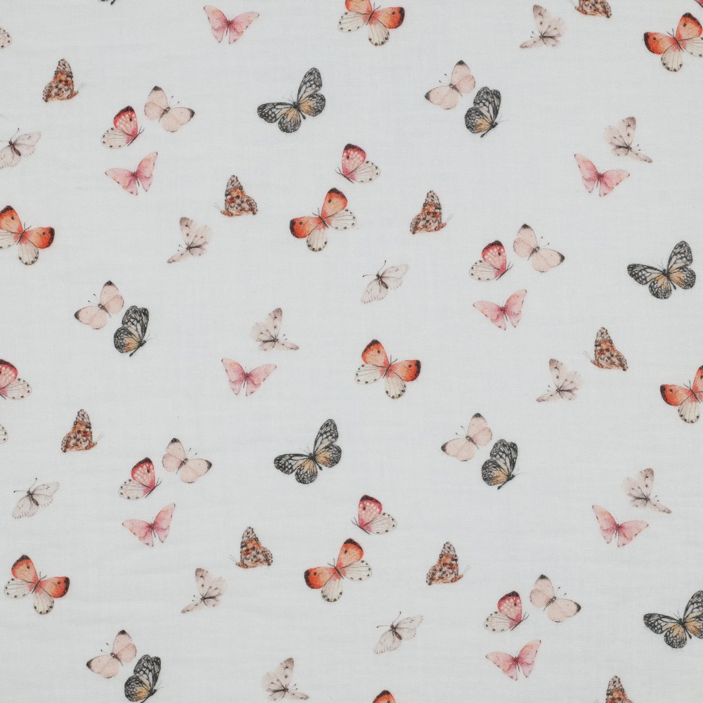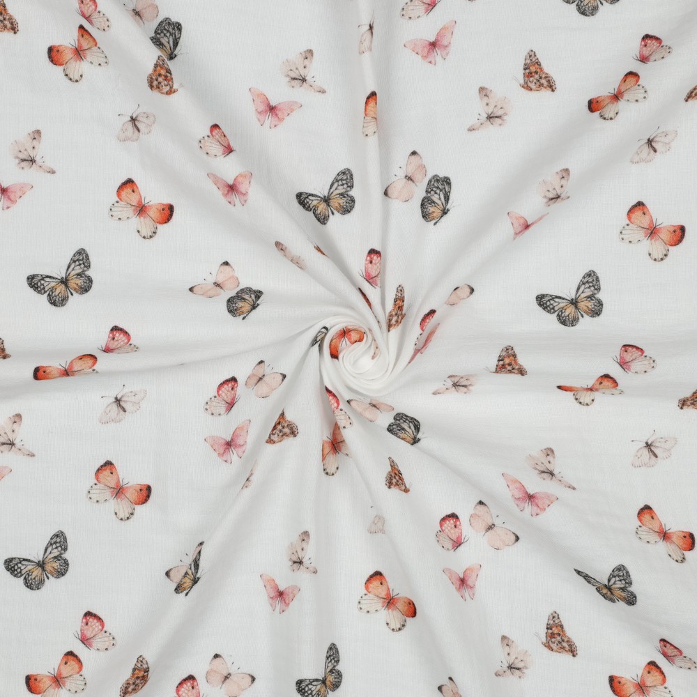 Puuvillakrepp, musliin – liblikad valgel