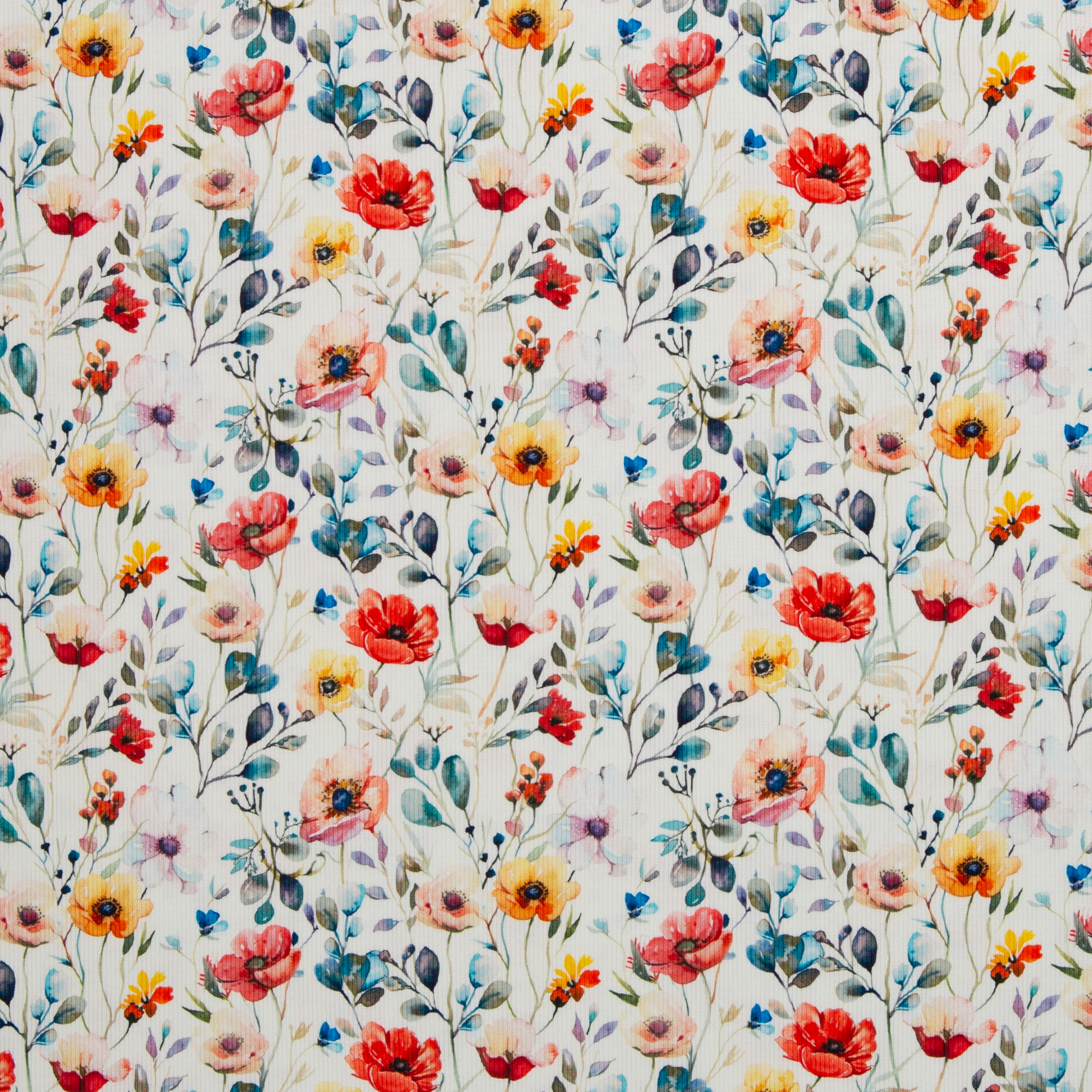 Ribiline trikotaaž värvilisete lillede mustriga on kvaliteetne, elastne ja hästi vormi hoidev kangas, mis sobib ideaalselt mugavate ja stiilsete rõivaste õmblemiseks. Valgel taustal kirkad lilleõied loovad erksa ja pilkupüüdva tulemuse.